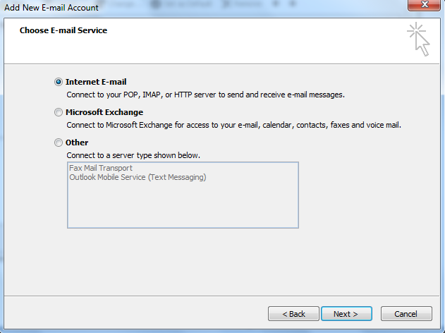 Chọn Internet E-mail, click Next để tiếp tục