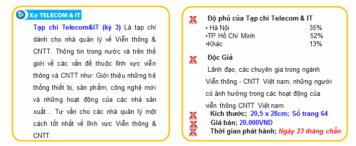 Chúng tôi hân hạnh gửi tới quý khách hàng bảng báo giá các sản phẩm quảng cáo trên các tạp chí CNTT uy tin nhất sau đây :